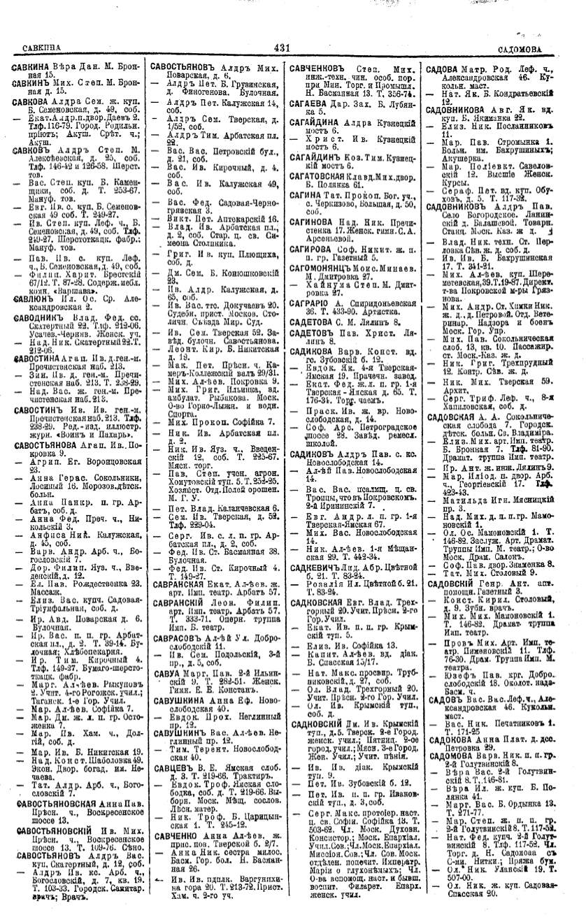 Алфавитный указатель адресовъ жителей г. Москвы и ея пригородовъ - page 429