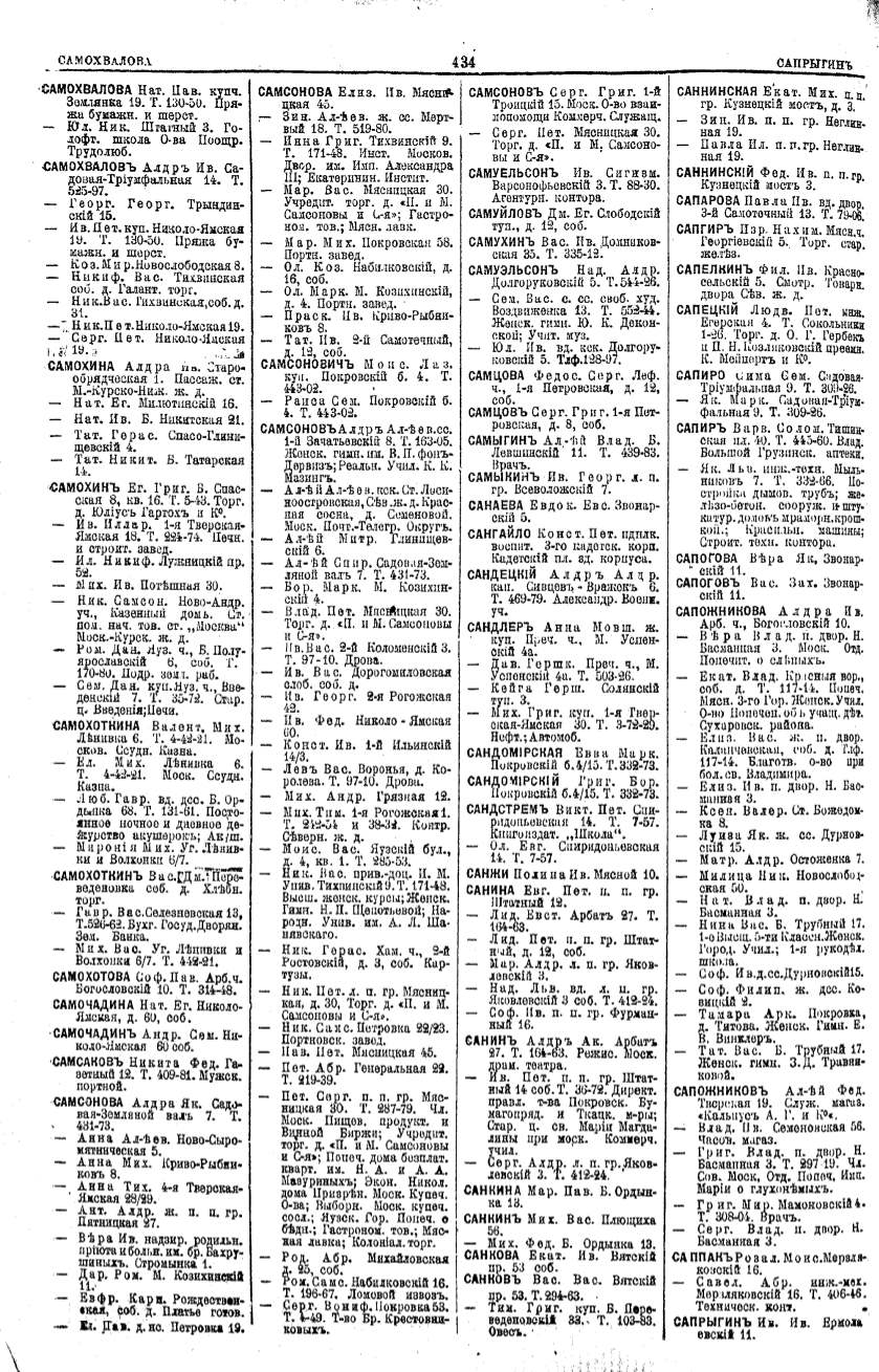 Алфавитный указатель адресовъ жителей г. Москвы и ея пригородовъ - page 432