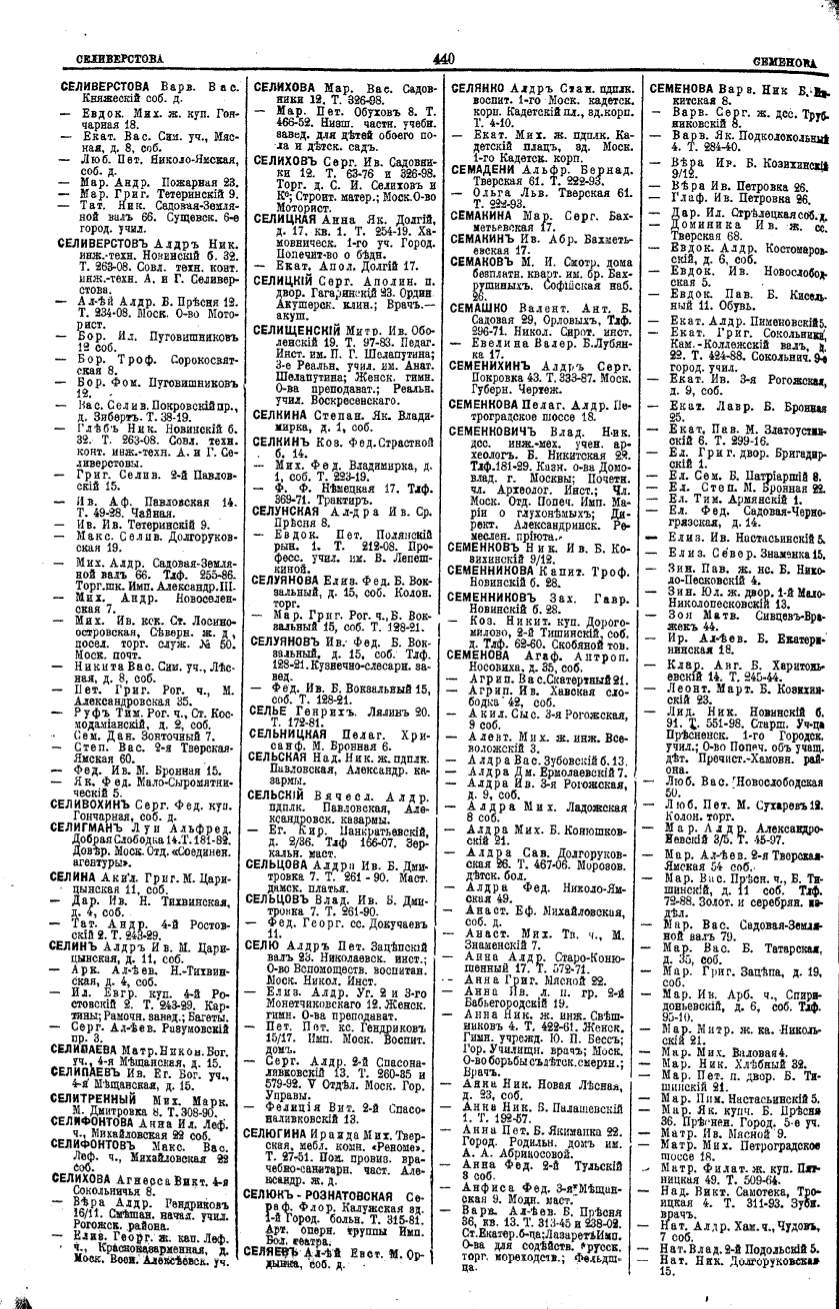 Алфавитный указатель адресовъ жителей г. Москвы и ея пригородовъ - page 438
