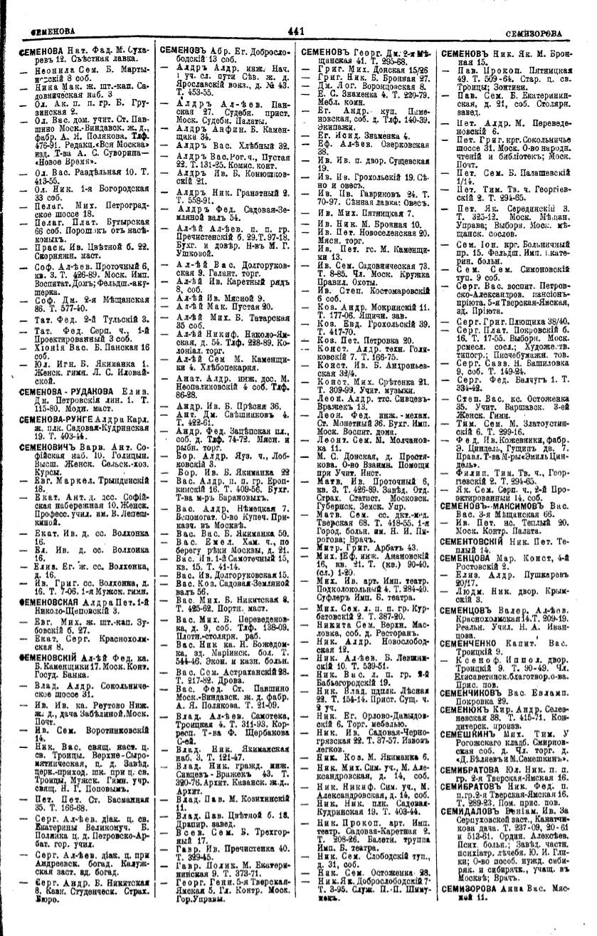 Алфавитный указатель адресовъ жителей г. Москвы и ея пригородовъ - page 439