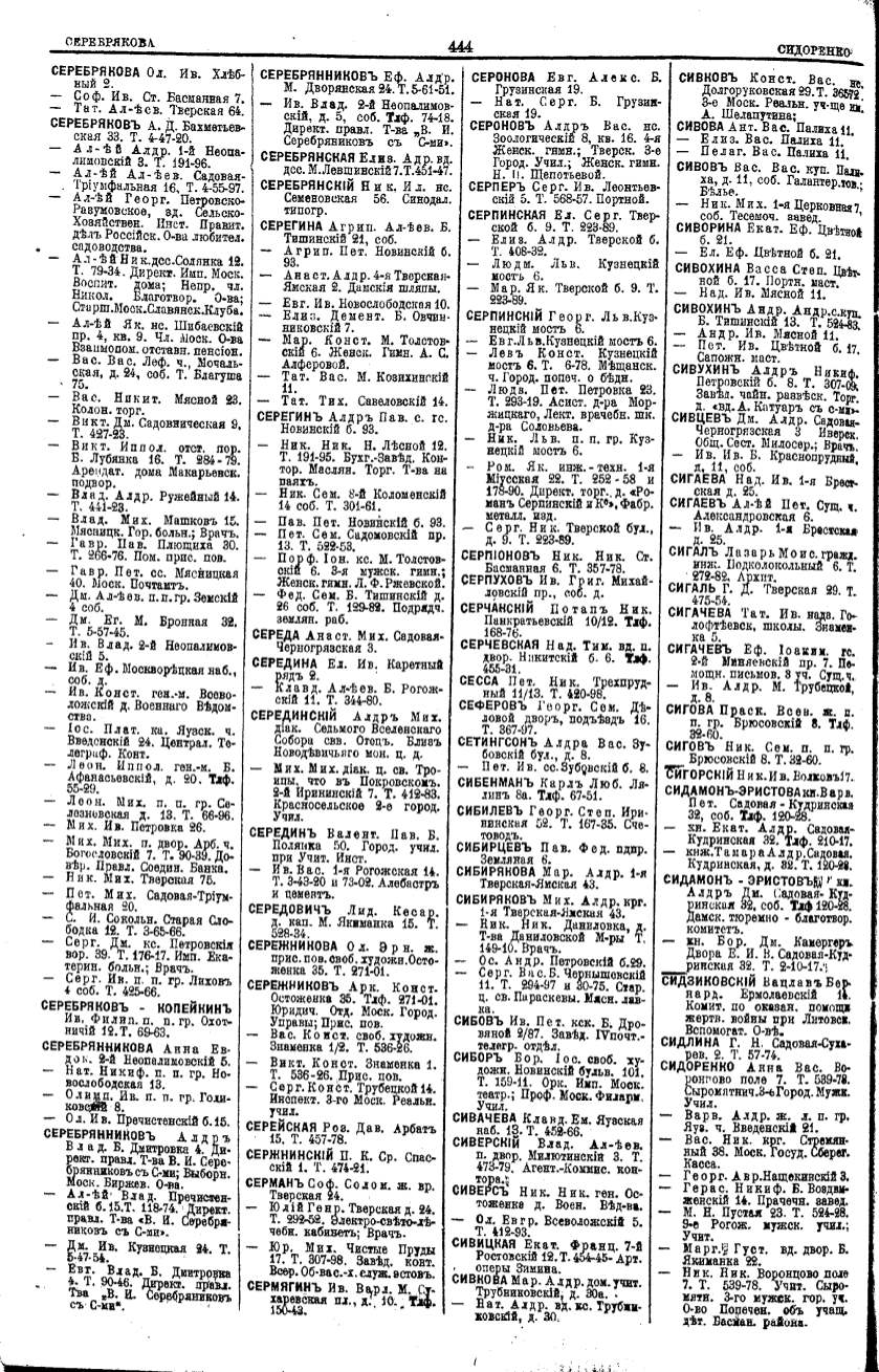 Алфавитный указатель адресовъ жителей г. Москвы и ея пригородовъ - page 442