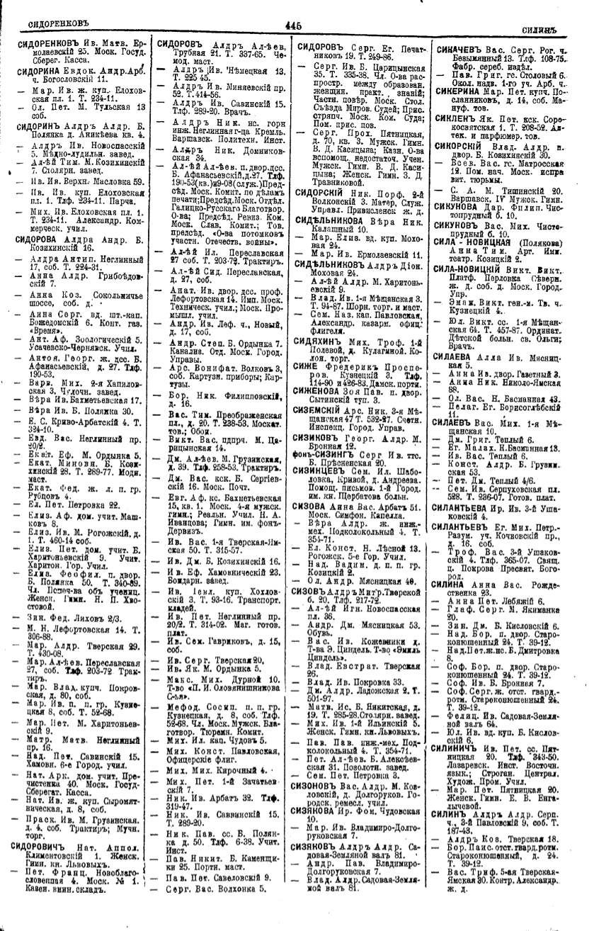 Алфавитный указатель адресовъ жителей г. Москвы и ея пригородовъ - page 443