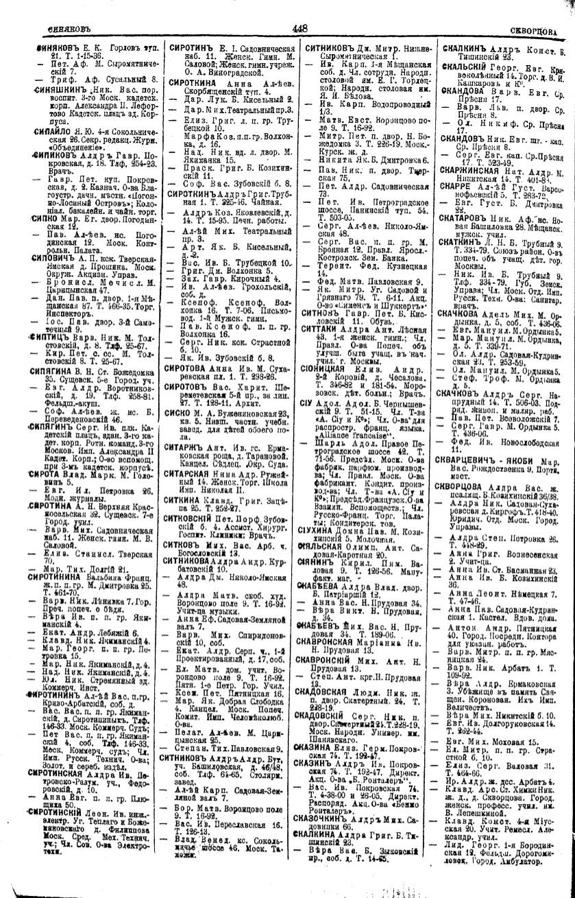 Алфавитный указатель адресовъ жителей г. Москвы и ея пригородовъ - page 446
