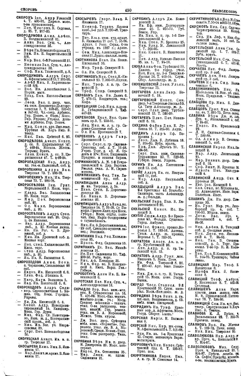 Алфавитный указатель адресовъ жителей г. Москвы и ея пригородовъ - page 448
