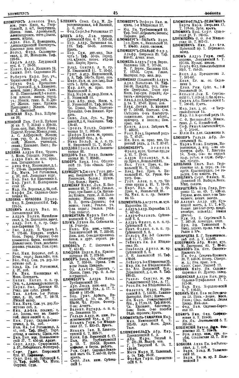Алфавитный указатель адресовъ жителей г. Москвы и ея пригородовъ - page 45