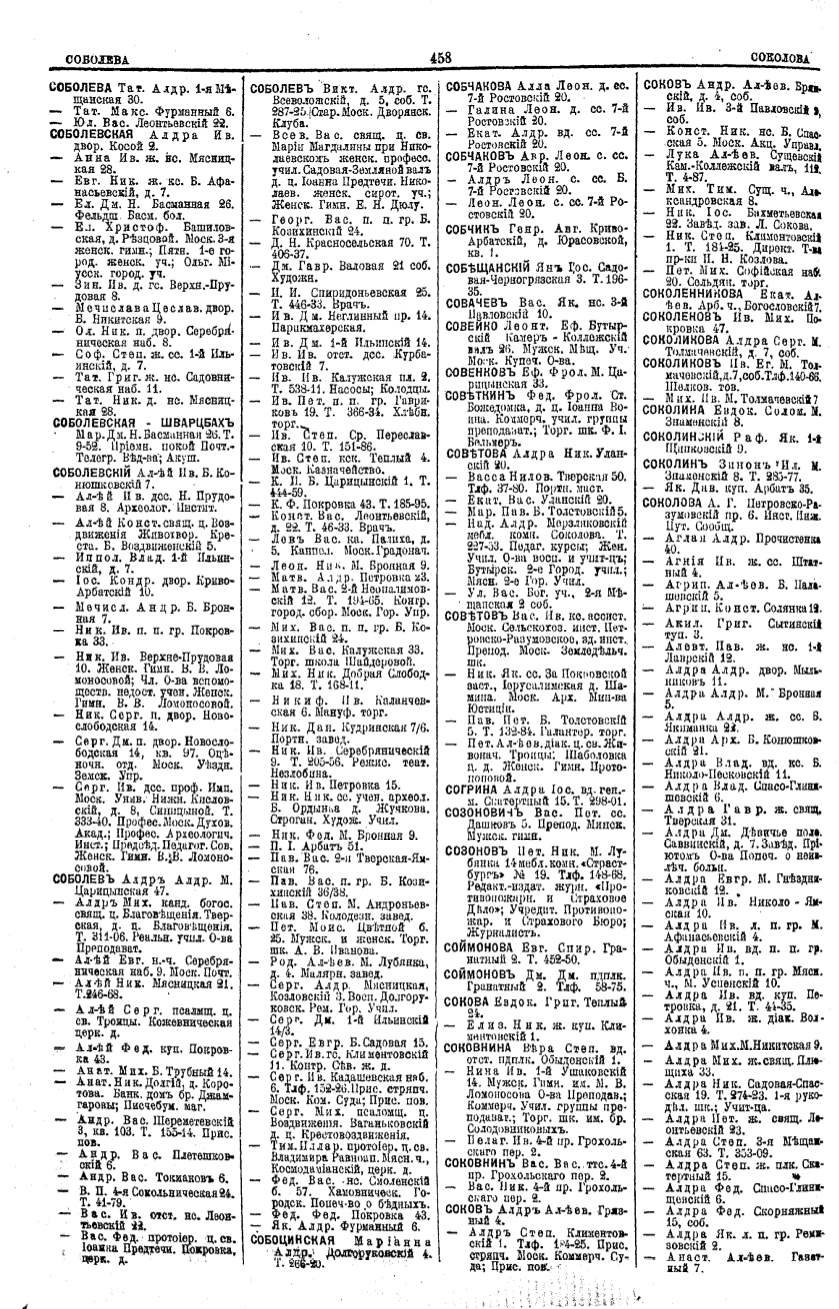 Алфавитный указатель адресовъ жителей г. Москвы и ея пригородовъ - page 456
