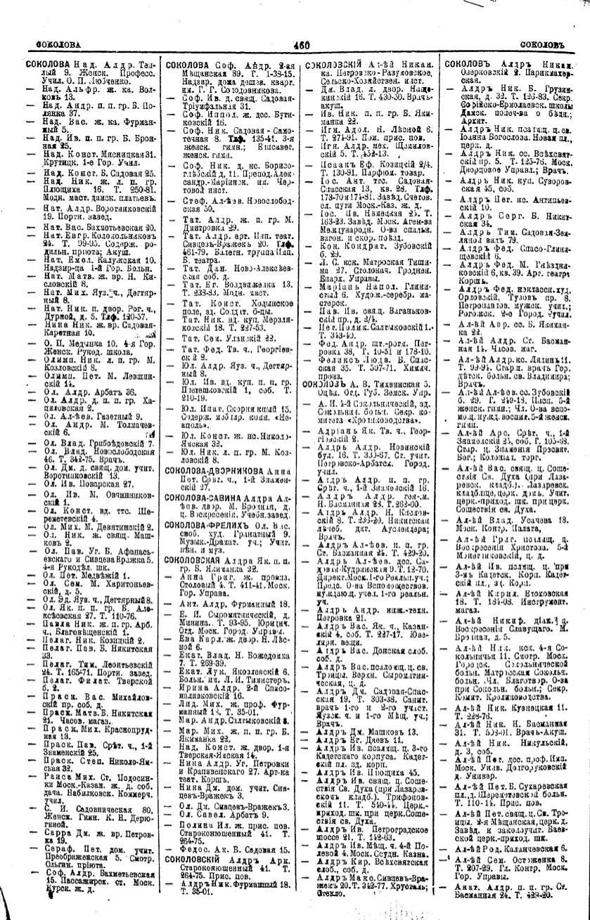 Алфавитный указатель адресовъ жителей г. Москвы и ея пригородовъ - page 458