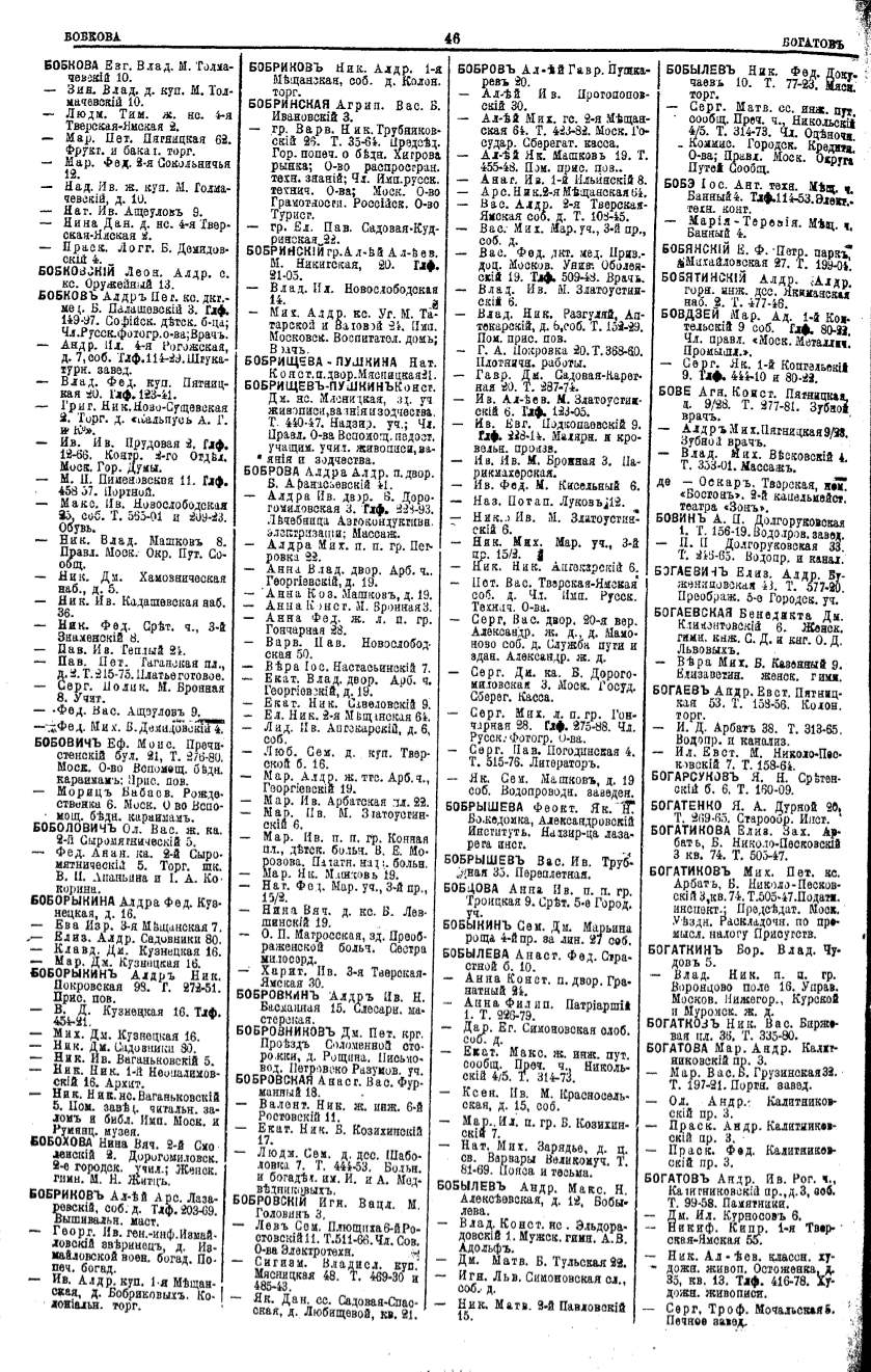 Алфавитный указатель адресовъ жителей г. Москвы и ея пригородовъ - page 46