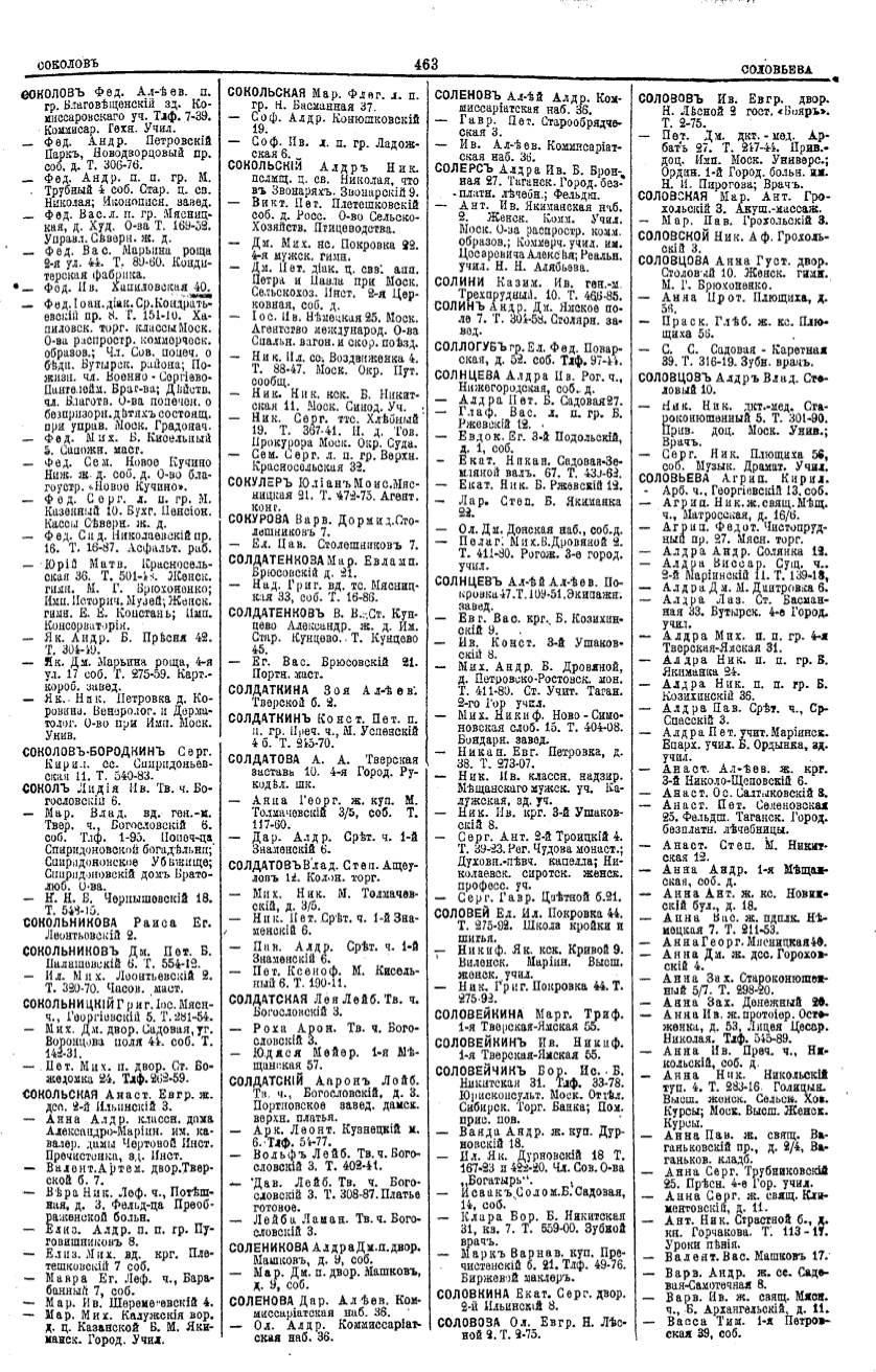 Алфавитный указатель адресовъ жителей г. Москвы и ея пригородовъ - page 461