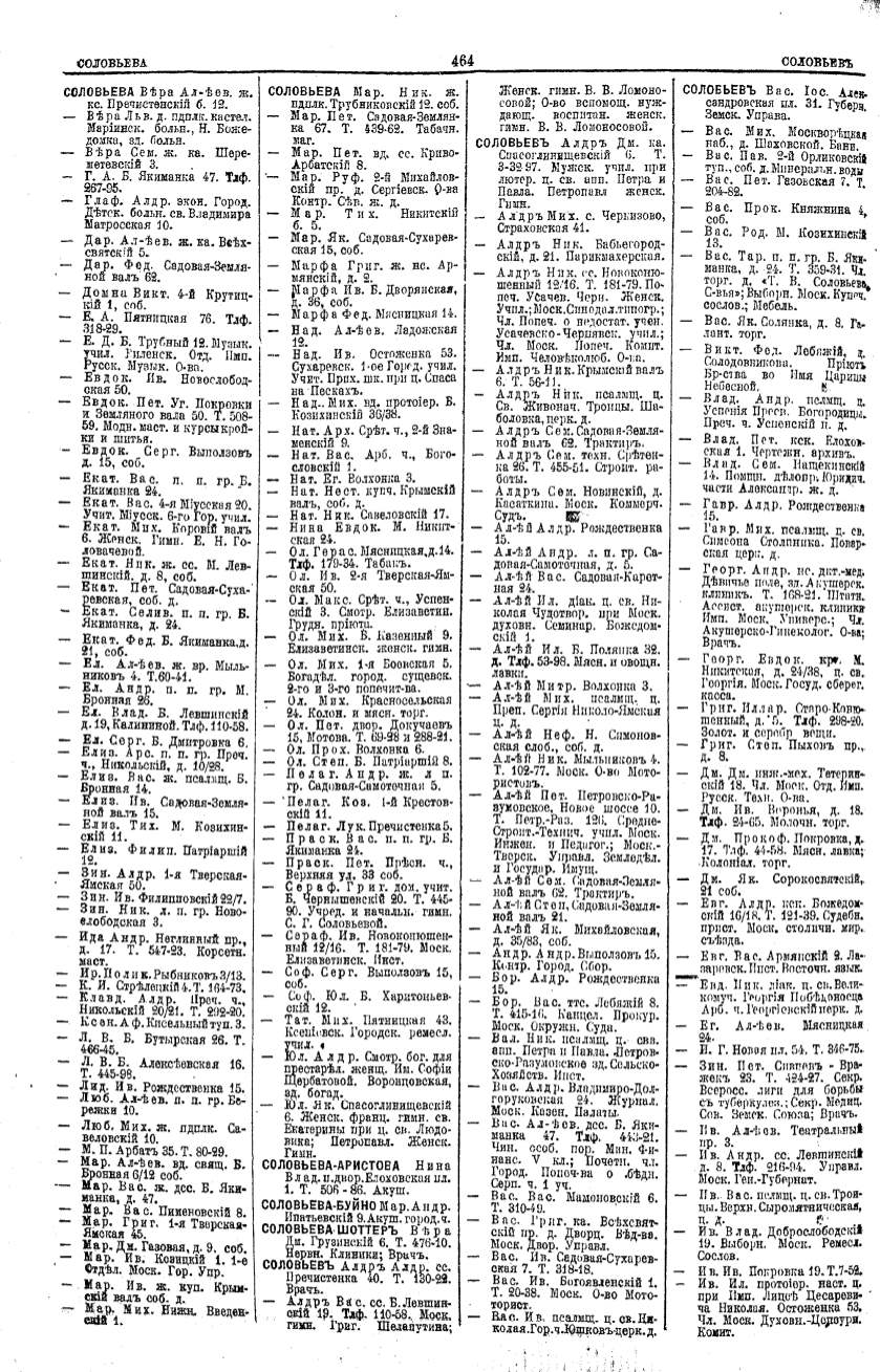 Алфавитный указатель адресовъ жителей г. Москвы и ея пригородовъ - page 462