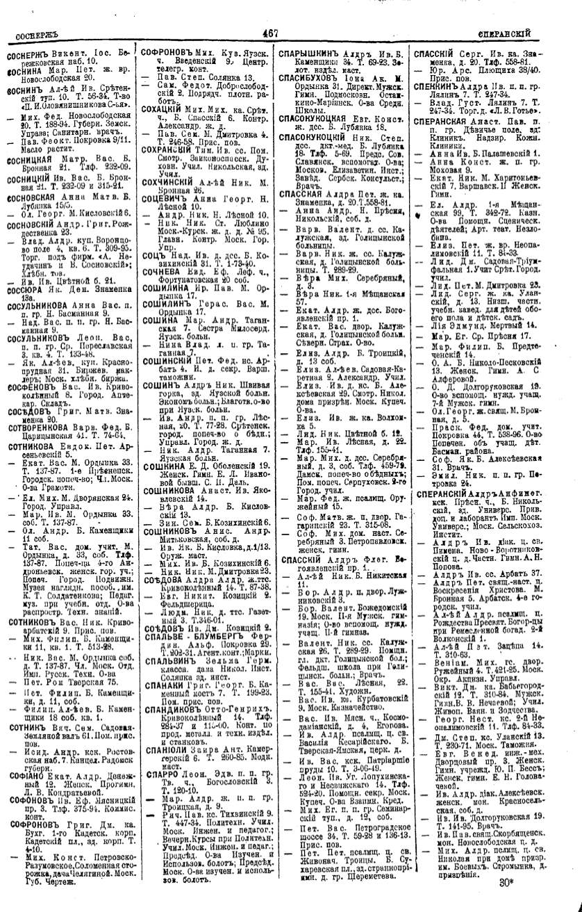 Алфавитный указатель адресовъ жителей г. Москвы и ея пригородовъ - page 465
