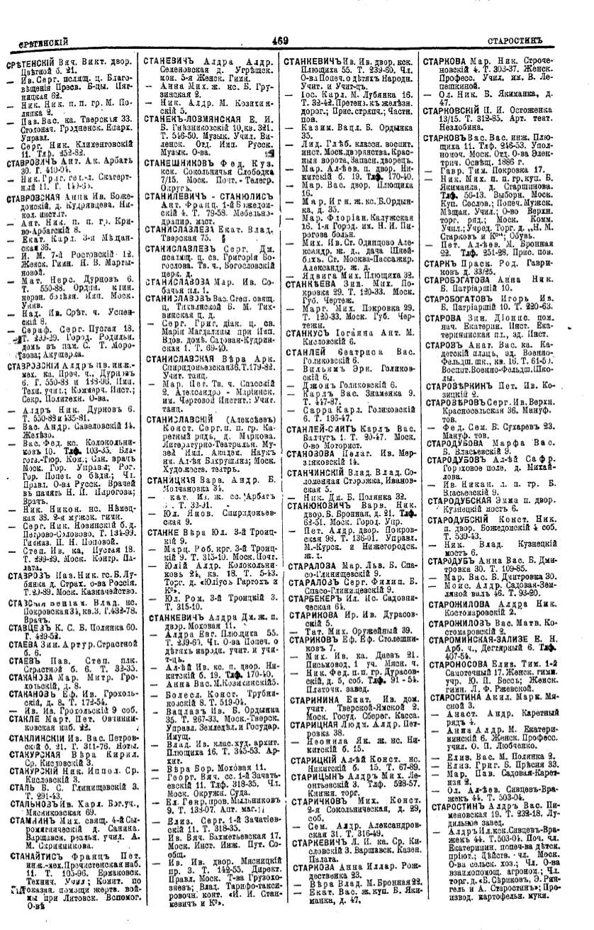 Алфавитный указатель адресовъ жителей г. Москвы и ея пригородовъ - page 467