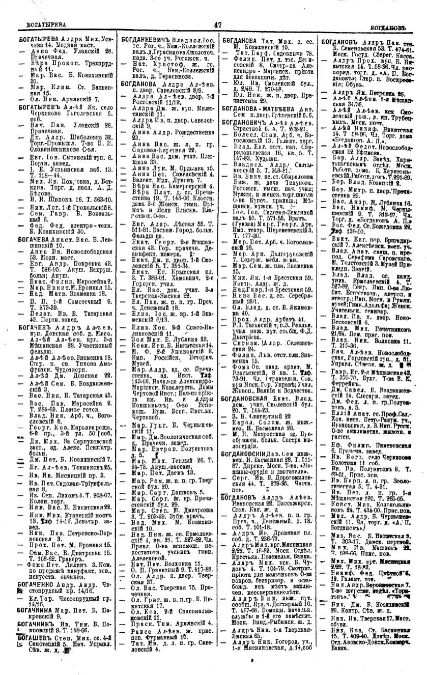 Алфавитный указатель адресовъ жителей г. Москвы и ея пригородовъ - page 47
