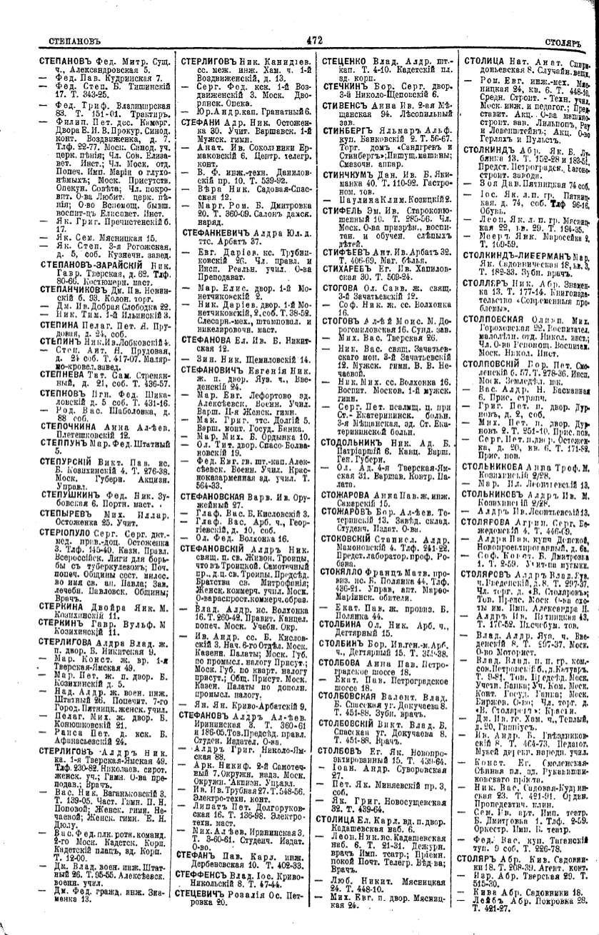 Алфавитный указатель адресовъ жителей г. Москвы и ея пригородовъ - page 470