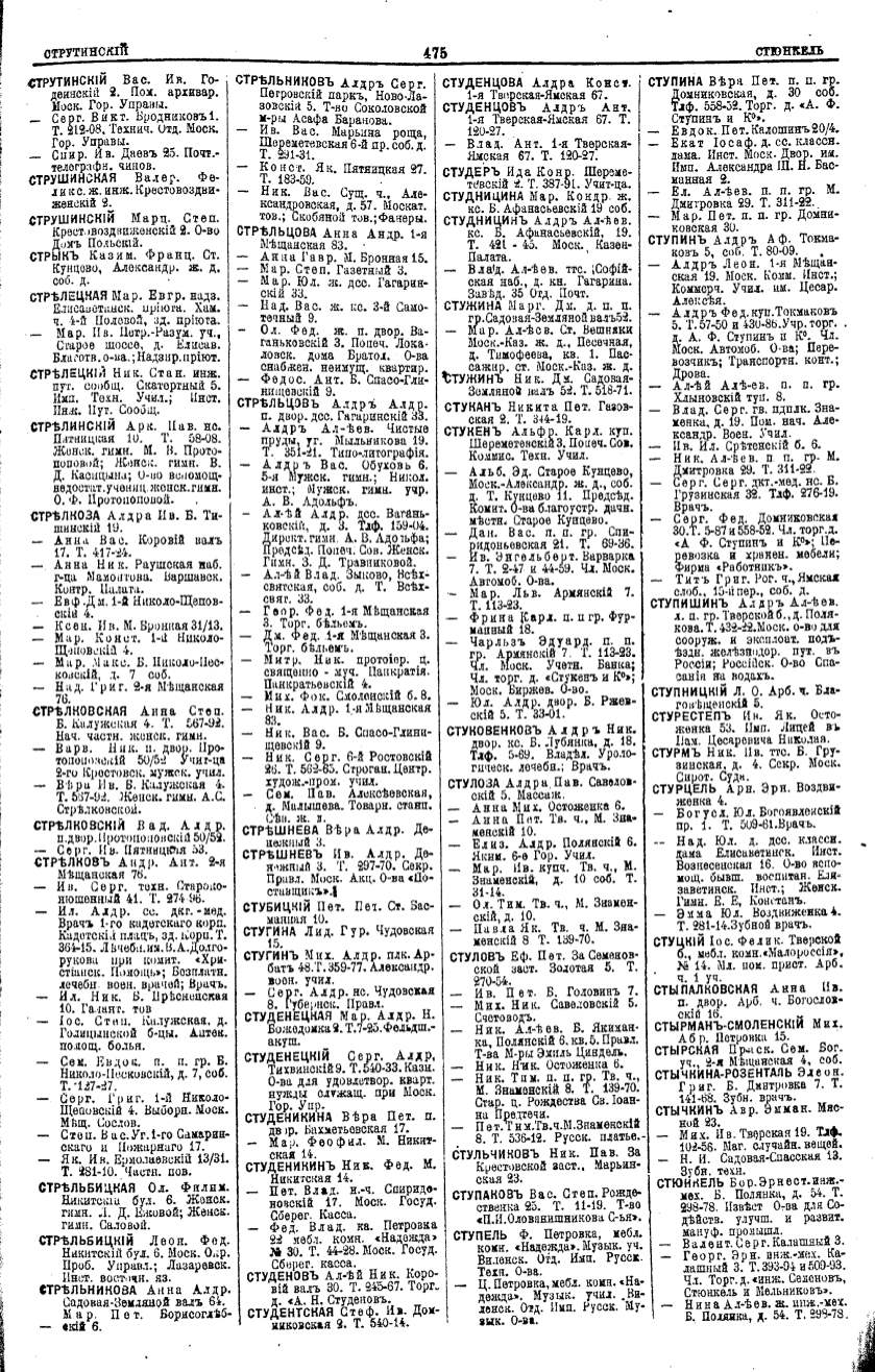 Алфавитный указатель адресовъ жителей г. Москвы и ея пригородовъ - page 473