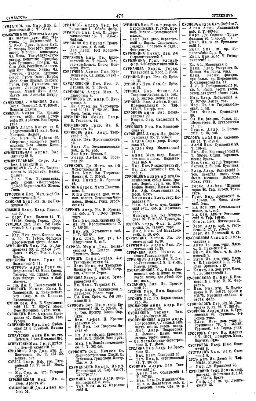 Алфавитный указатель адресовъ жителей г. Москвы и ея пригородовъ - page 475