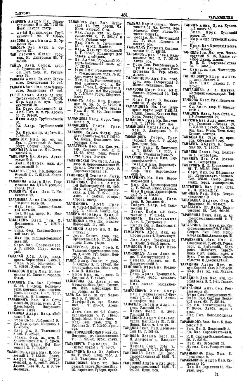Алфавитный указатель адресовъ жителей г. Москвы и ея пригородовъ - page 479