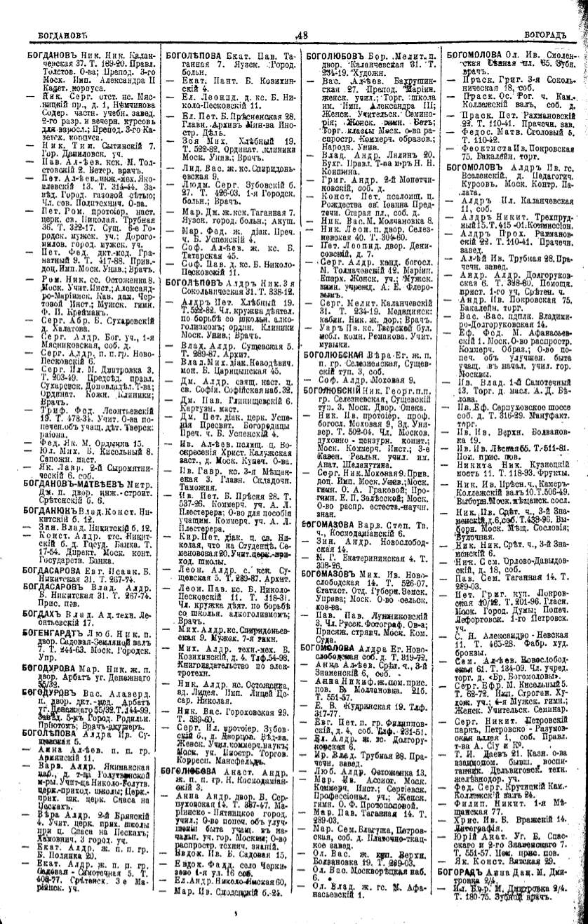 Алфавитный указатель адресовъ жителей г. Москвы и ея пригородовъ - page 48