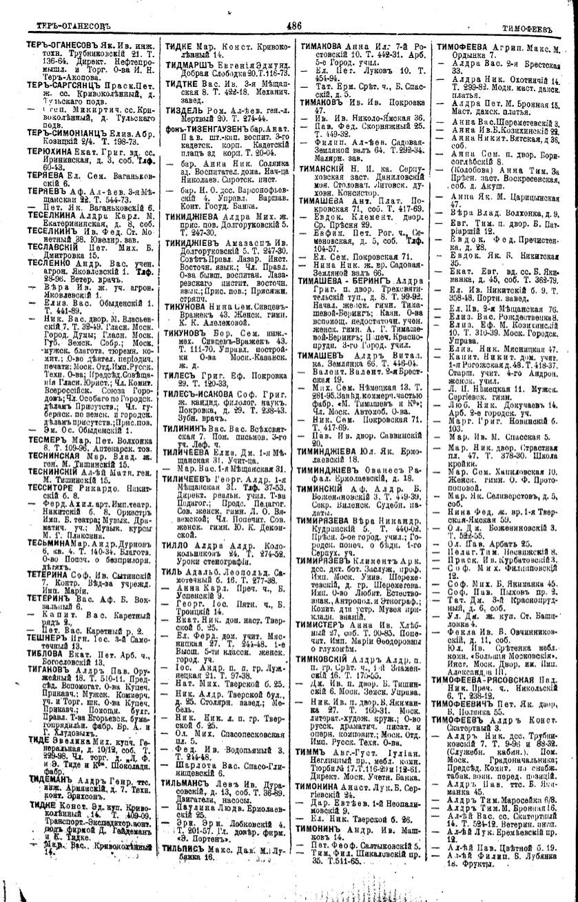 Алфавитный указатель адресовъ жителей г. Москвы и ея пригородовъ - page 484