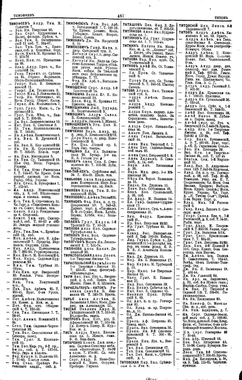 Алфавитный указатель адресовъ жителей г. Москвы и ея пригородовъ - page 485
