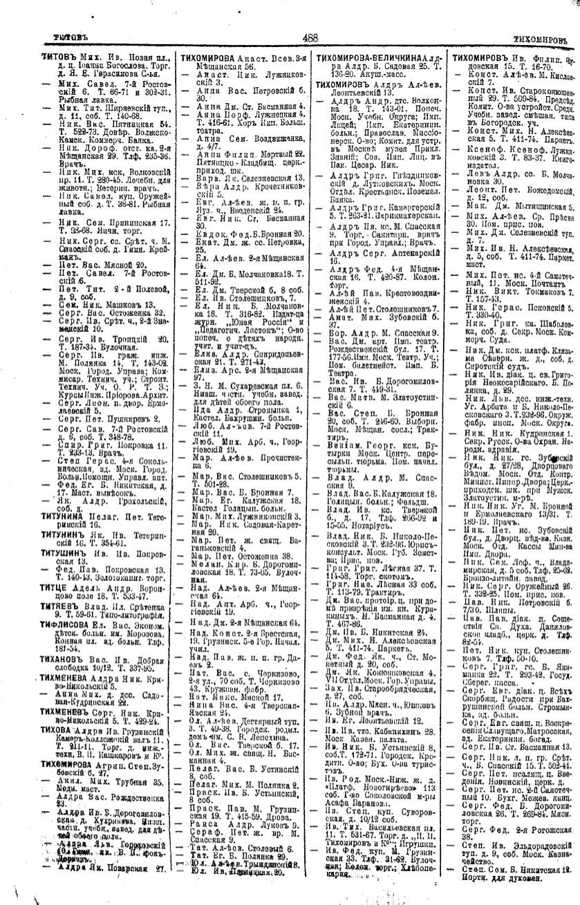 Алфавитный указатель адресовъ жителей г. Москвы и ея пригородовъ - page 486