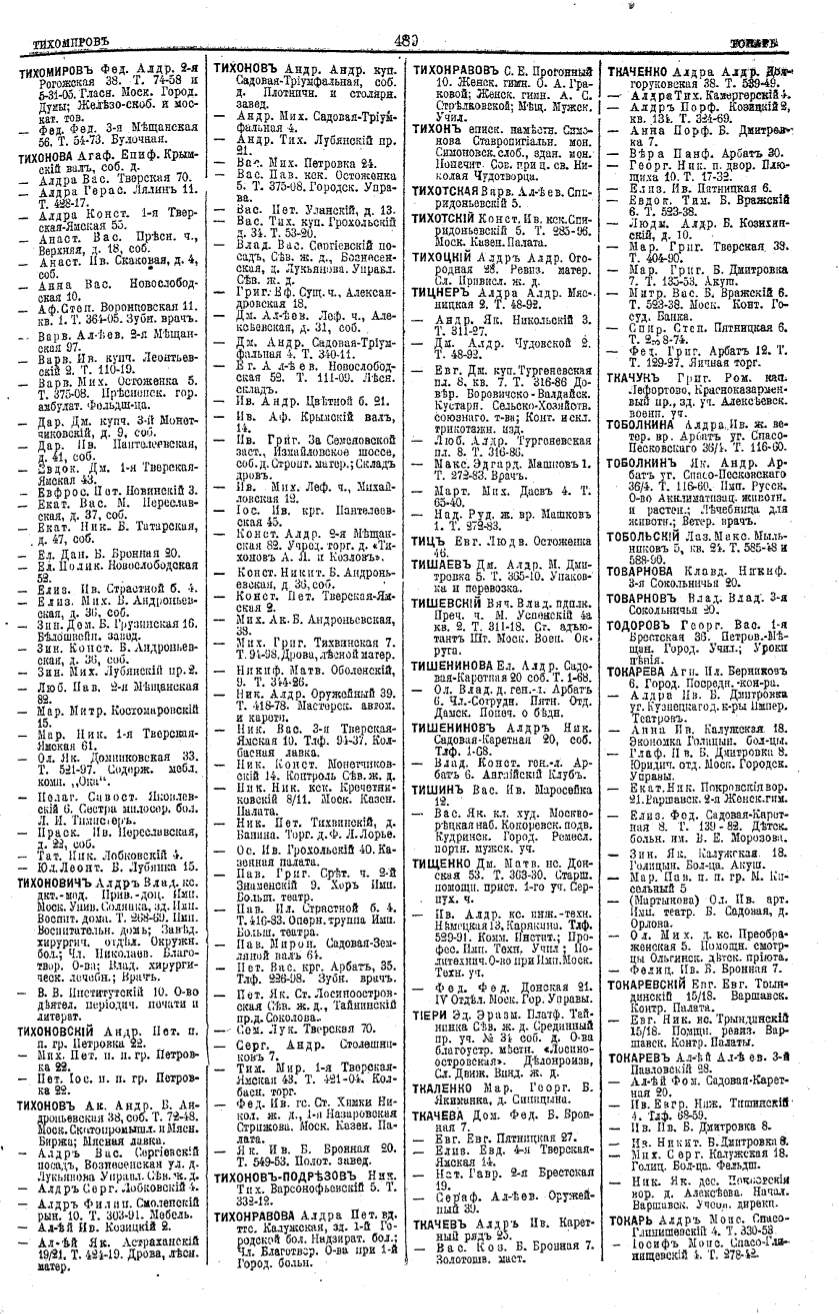 Алфавитный указатель адресовъ жителей г. Москвы и ея пригородовъ - page 487