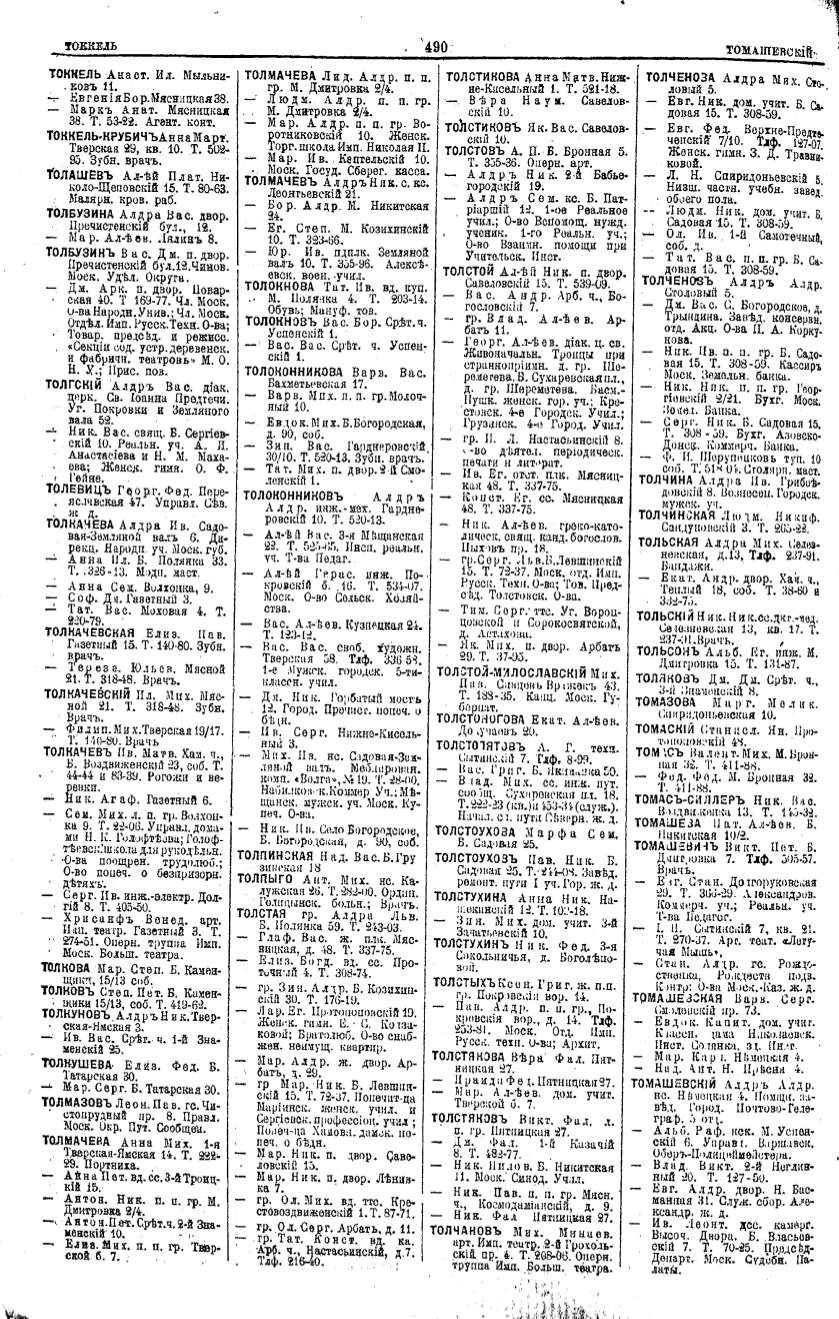 Алфавитный указатель адресовъ жителей г. Москвы и ея пригородовъ - page 488