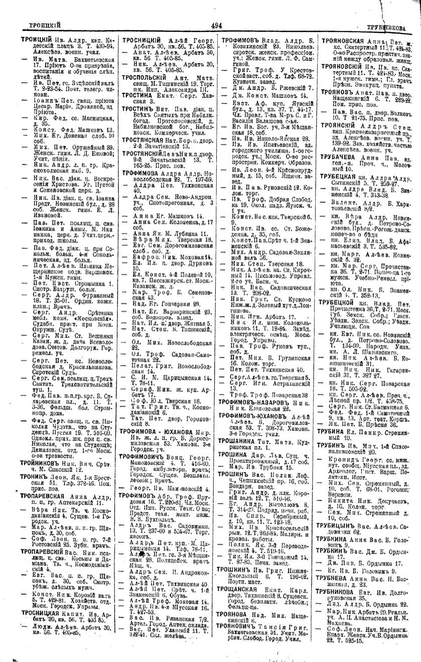 Алфавитный указатель адресовъ жителей г. Москвы и ея пригородовъ - page 492