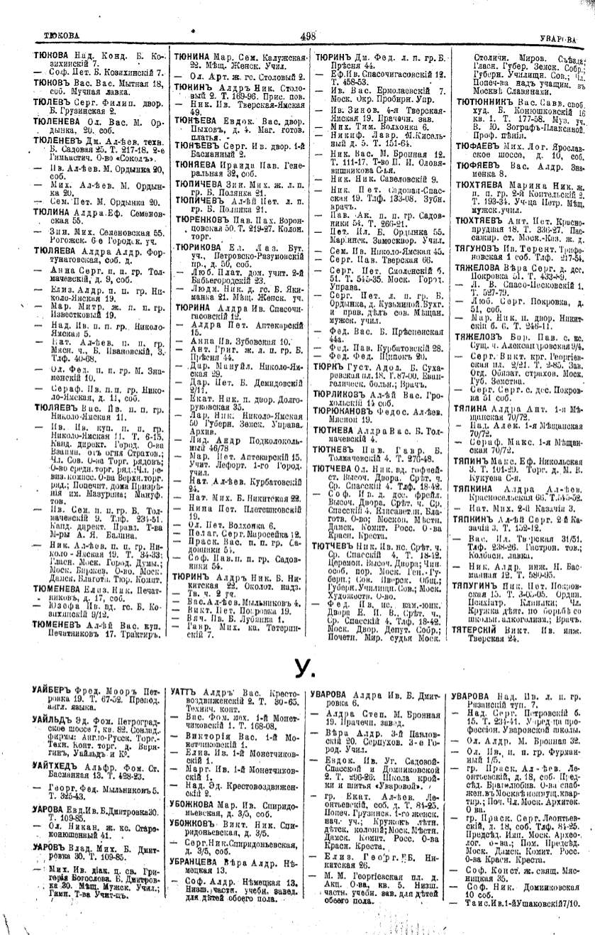 Алфавитный указатель адресовъ жителей г. Москвы и ея пригородовъ - page 496
