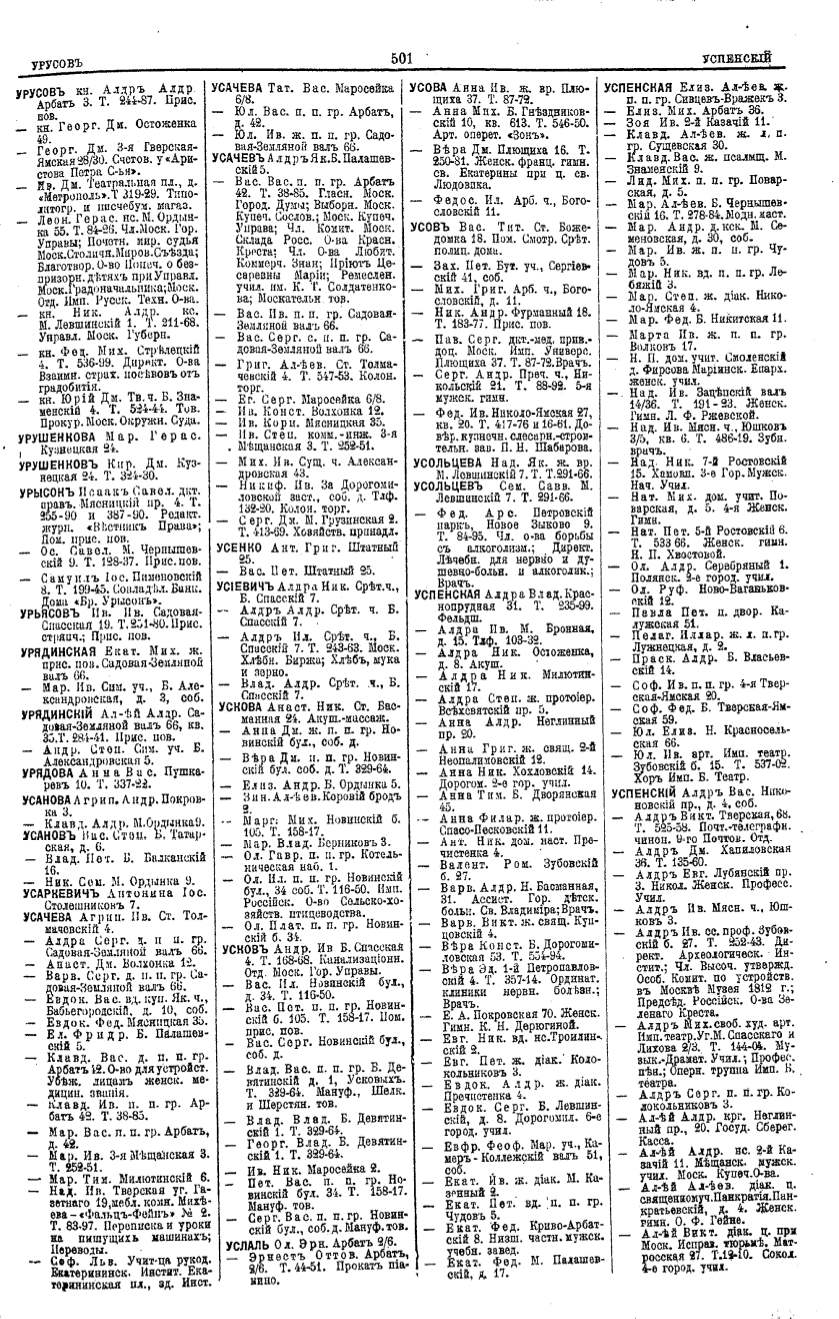 Алфавитный указатель адресовъ жителей г. Москвы и ея пригородовъ - page 499