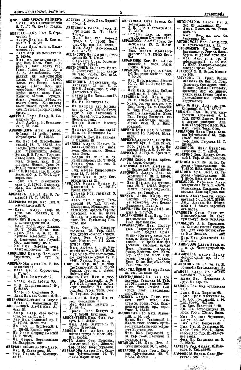 Алфавитный указатель адресовъ жителей г. Москвы и ея пригородовъ - page 5