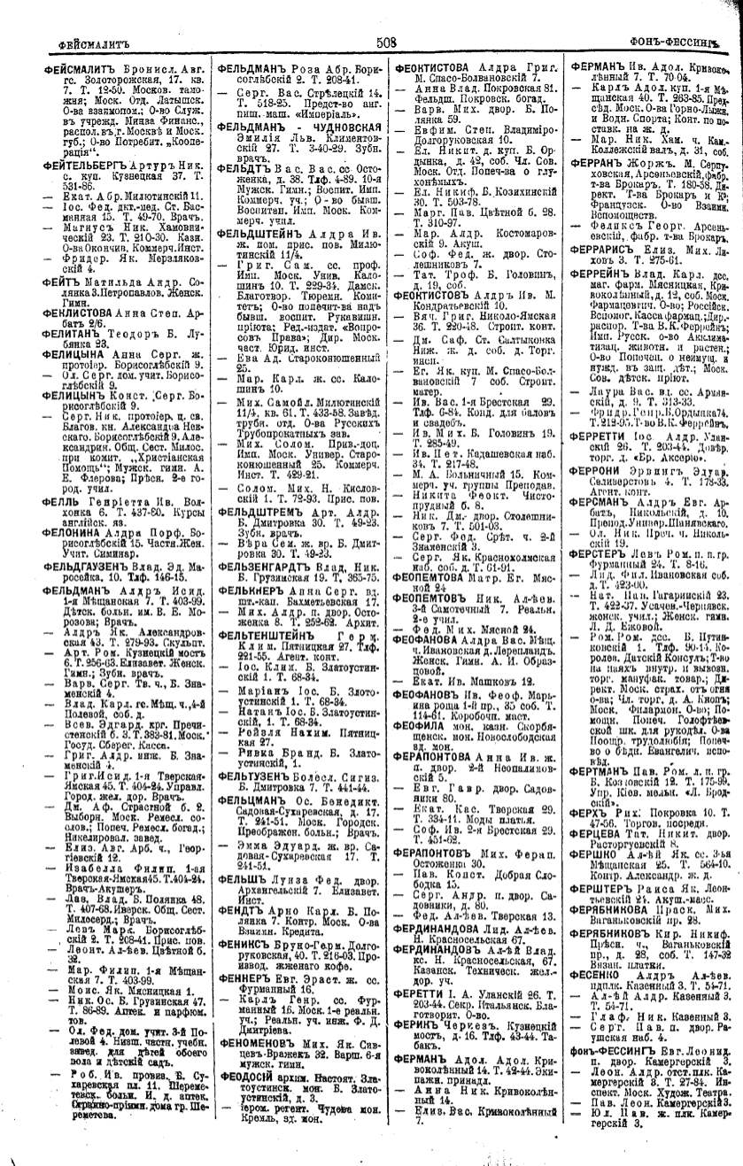 Алфавитный указатель адресовъ жителей г. Москвы и ея пригородовъ - page 506
