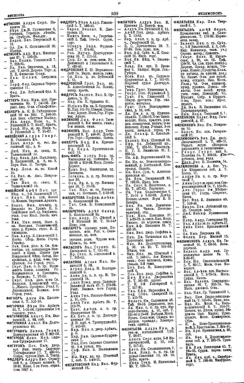 Алфавитный указатель адресовъ жителей г. Москвы и ея пригородовъ - page 507