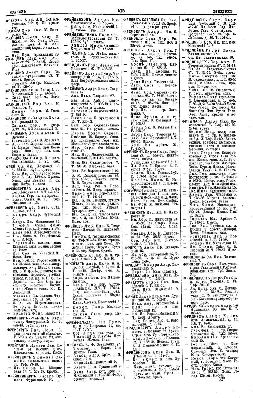 Алфавитный указатель адресовъ жителей г. Москвы и ея пригородовъ - page 513