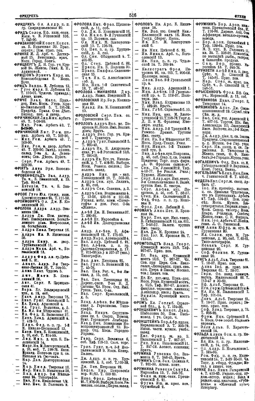 Алфавитный указатель адресовъ жителей г. Москвы и ея пригородовъ - page 514