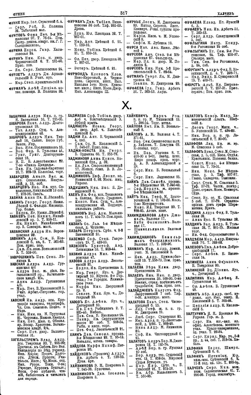 Алфавитный указатель адресовъ жителей г. Москвы и ея пригородовъ - page 515