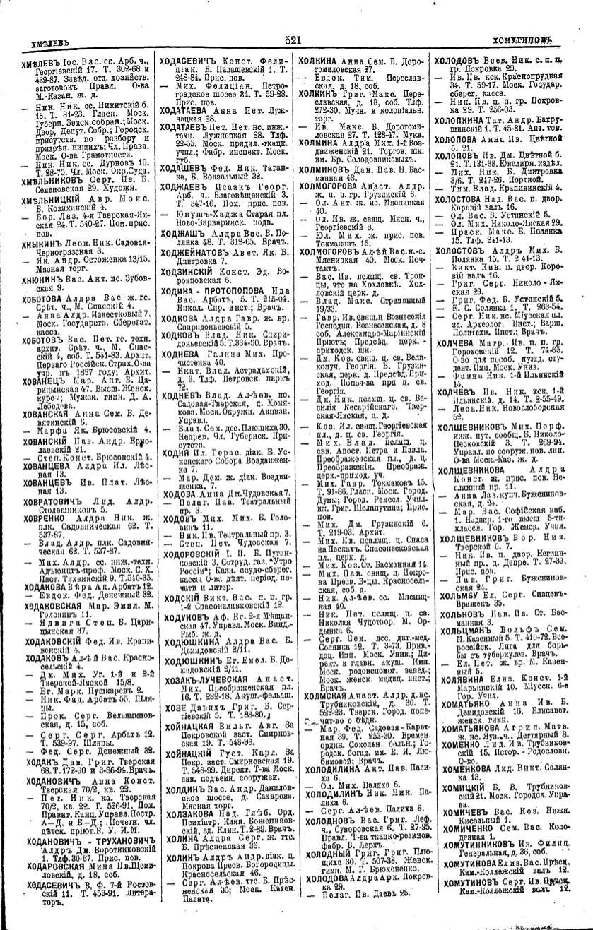 Алфавитный указатель адресовъ жителей г. Москвы и ея пригородовъ - page 519