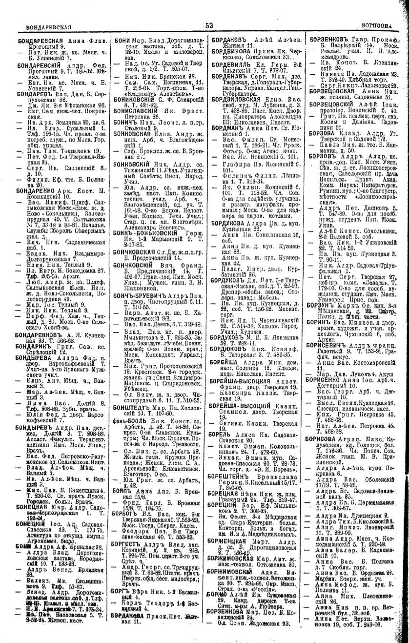 Алфавитный указатель адресовъ жителей г. Москвы и ея пригородовъ - page 52
