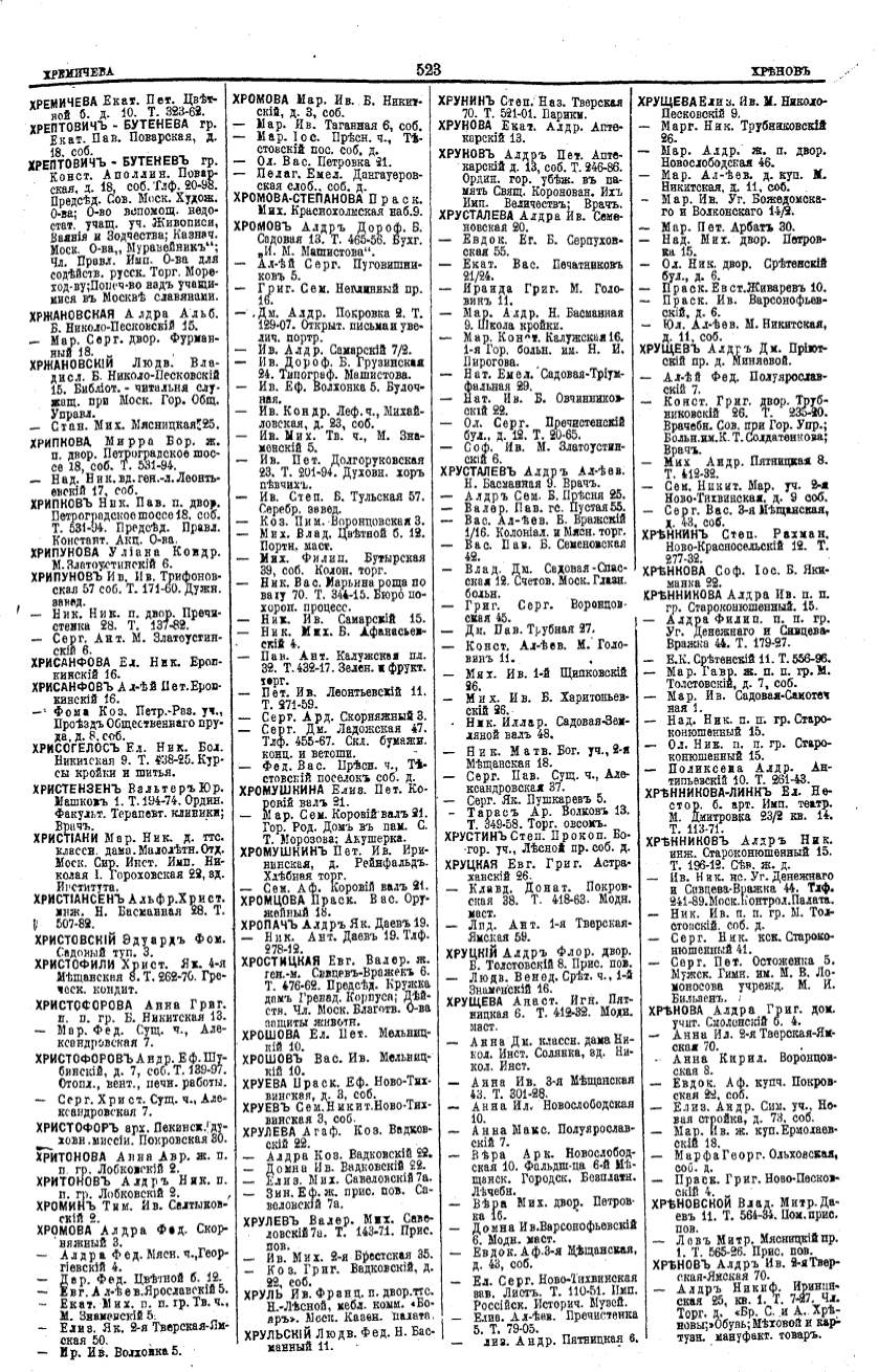Алфавитный указатель адресовъ жителей г. Москвы и ея пригородовъ - page 521