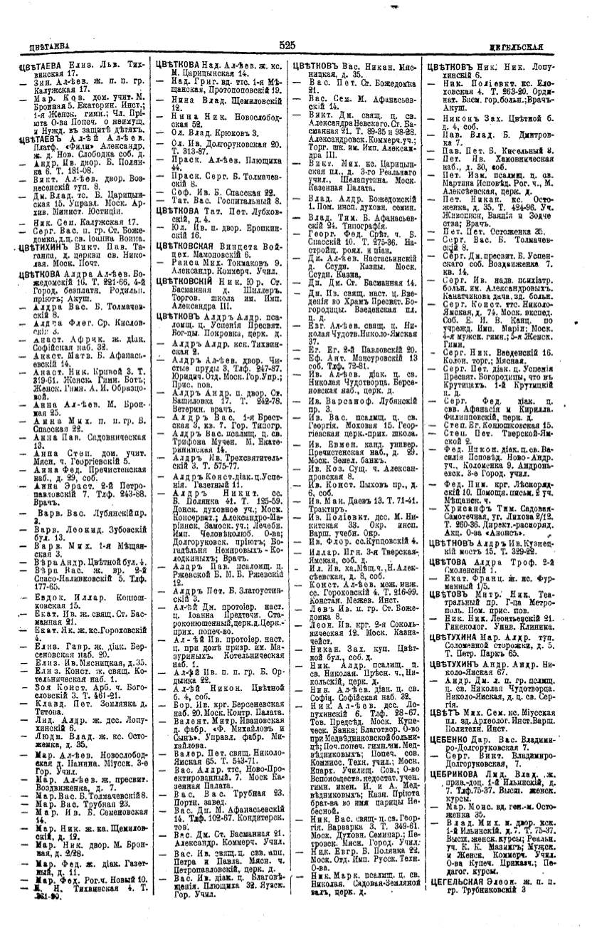 Алфавитный указатель адресовъ жителей г. Москвы и ея пригородовъ - page 523