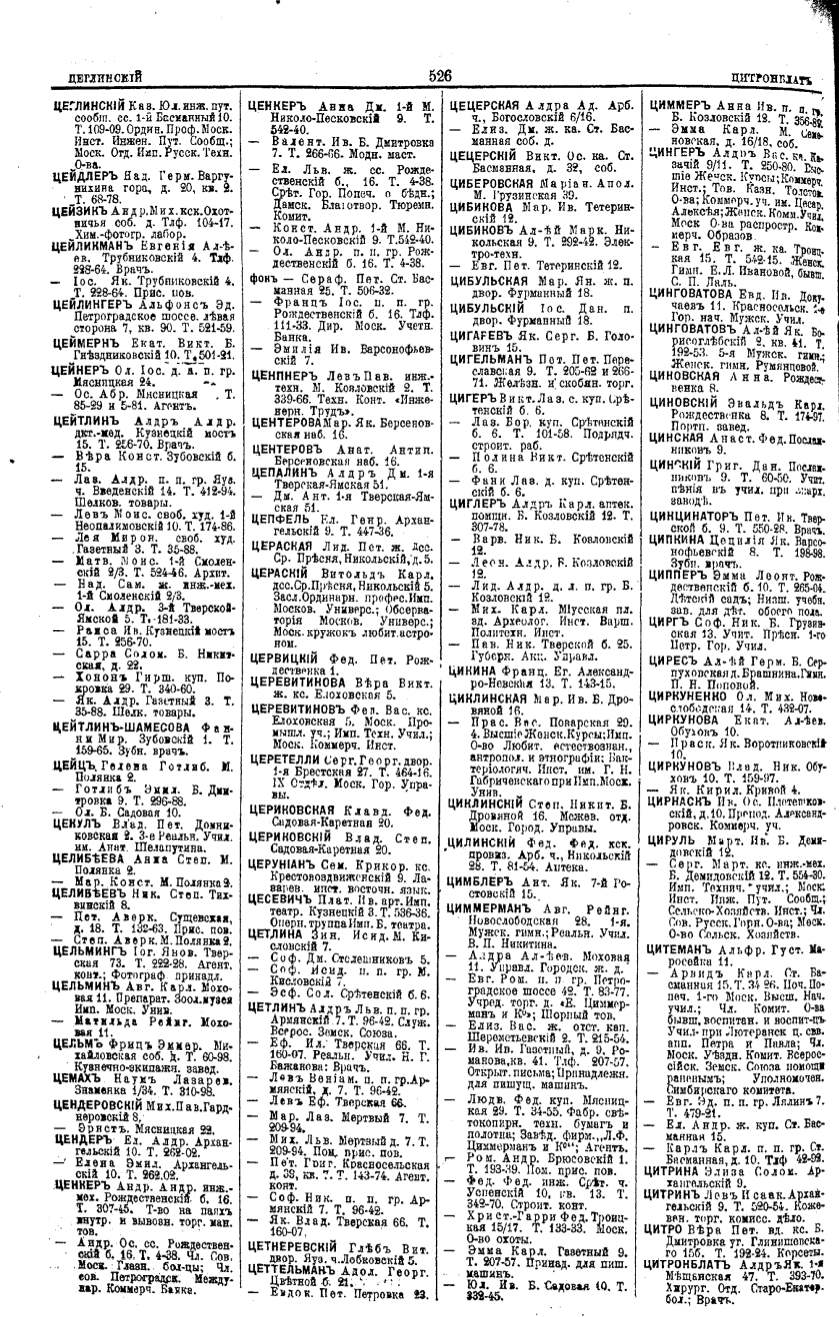 Алфавитный указатель адресовъ жителей г. Москвы и ея пригородовъ - page 524