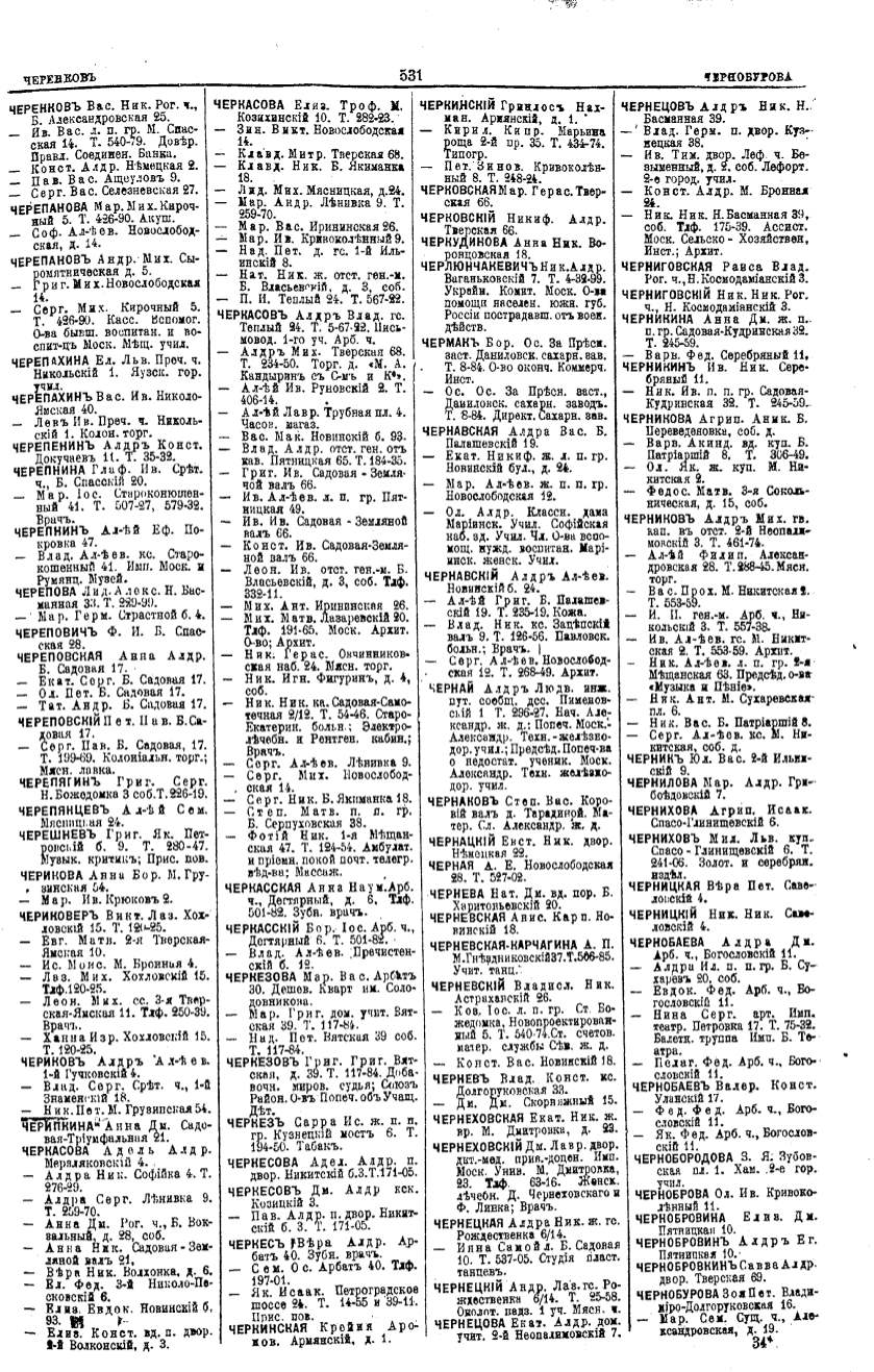 Алфавитный указатель адресовъ жителей г. Москвы и ея пригородовъ - page 529