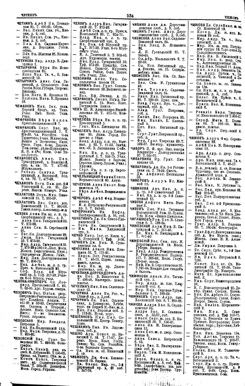 Алфавитный указатель адресовъ жителей г. Москвы и ея пригородовъ - page 532