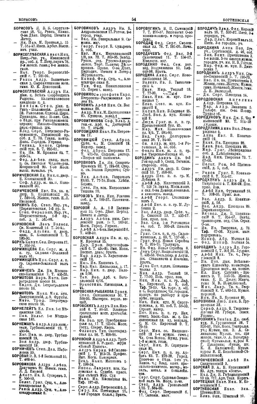 Алфавитный указатель адресовъ жителей г. Москвы и ея пригородовъ - page 54