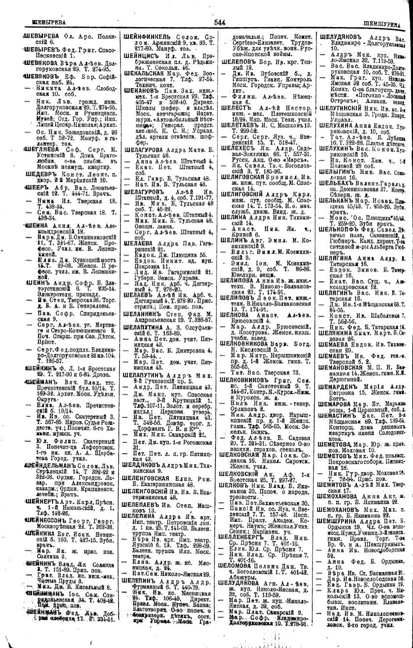 Алфавитный указатель адресовъ жителей г. Москвы и ея пригородовъ - page 542
