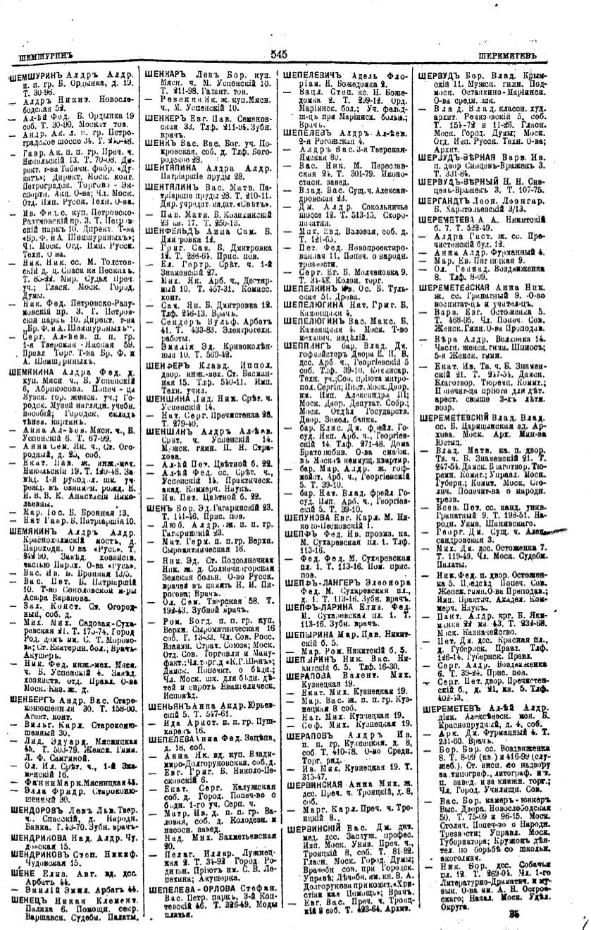 Алфавитный указатель адресовъ жителей г. Москвы и ея пригородовъ - page 543