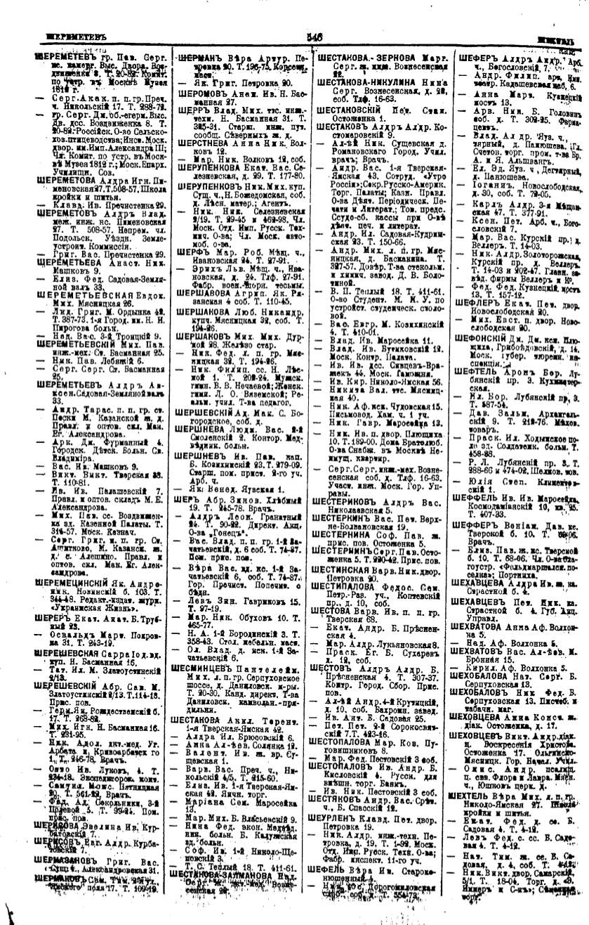 Алфавитный указатель адресовъ жителей г. Москвы и ея пригородовъ - page 544