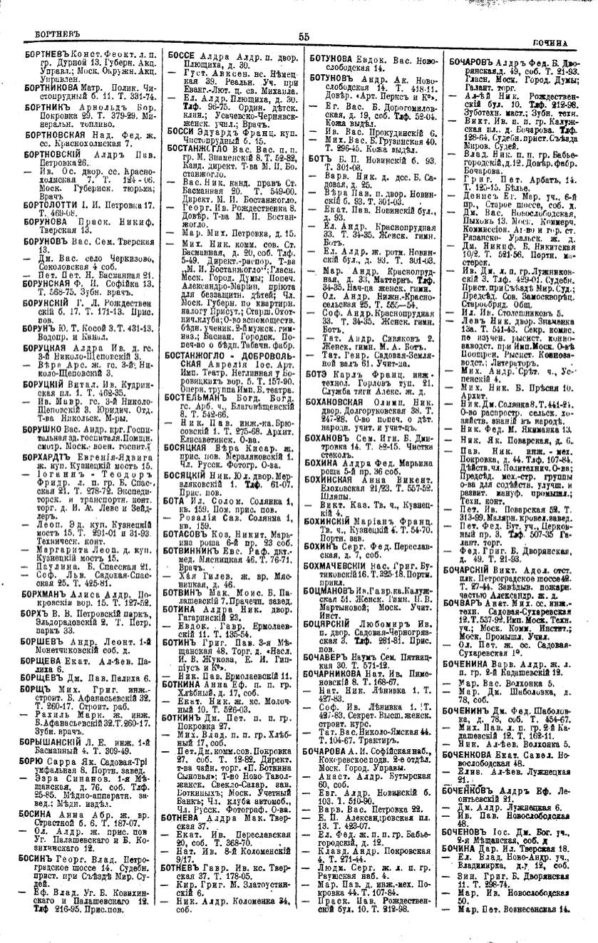 Алфавитный указатель адресовъ жителей г. Москвы и ея пригородовъ - page 55