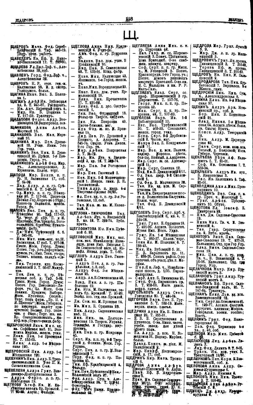 Алфавитный указатель адресовъ жителей г. Москвы и ея пригородовъ - page 556