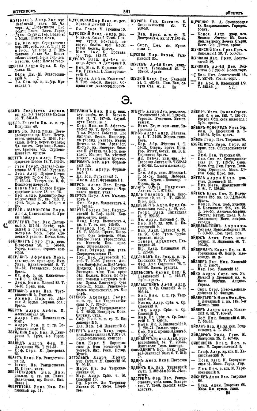 Алфавитный указатель адресовъ жителей г. Москвы и ея пригородовъ - page 559